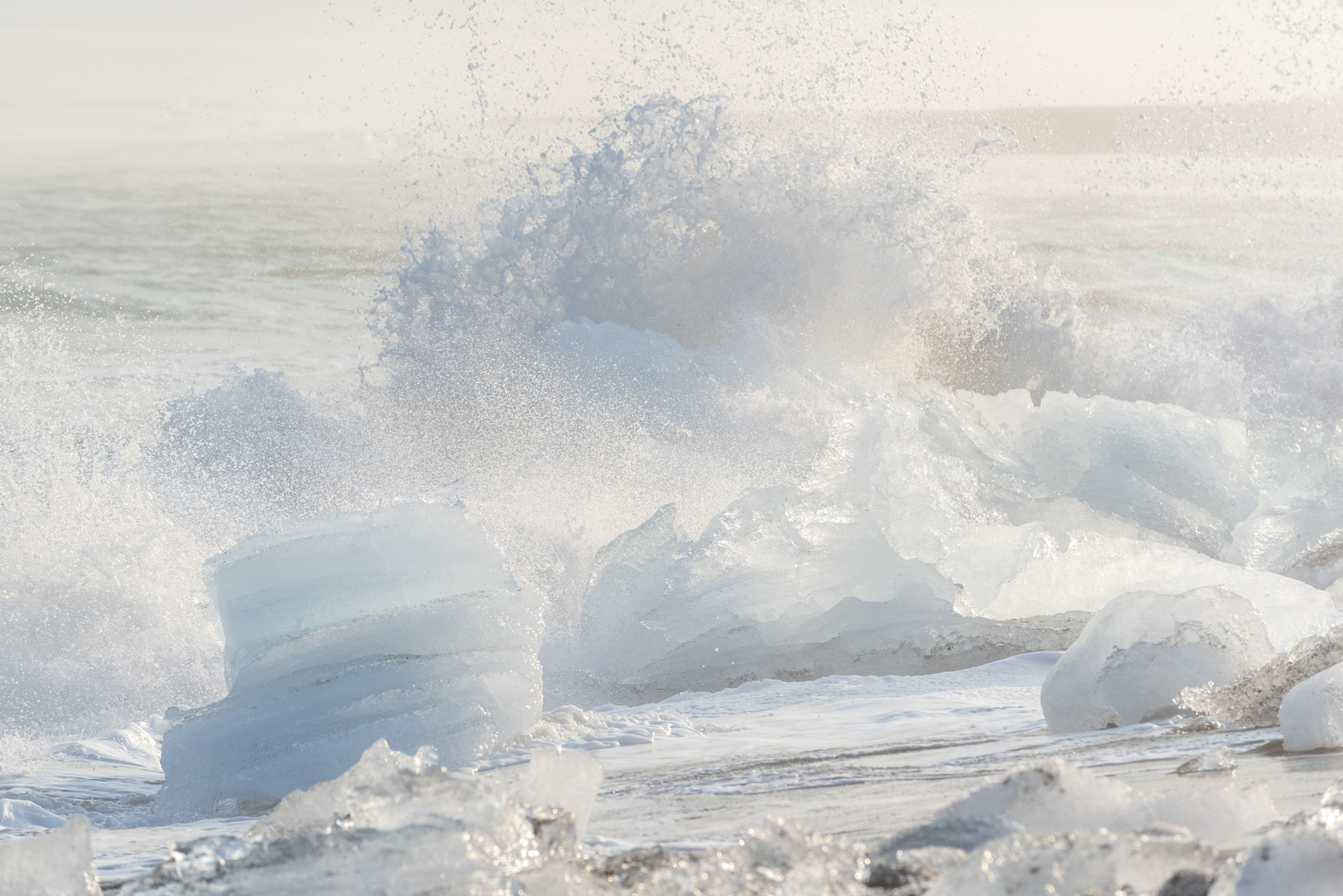 Thingvellir A 65km de Reykjavik, la faille de Thingvellir est un coup de griffe géant sur la plaine couverte de neige. Entre la plaque américaine et la plaque eurasienne, l’Islande s’écarte de 5mm par an au gré des mouvements tectoniques du rift. Thingvallavatn, le plus grand lac d’Islande est souvent pris par la glace. C’est aussi là que se tint le premier parlement viking au Xe siècle. Bruarfoss Une petite rivière glaciaire au milieu de nulle part, « Bruarfoss », le pont sur la cascade », dont le bleu intense de l’eau fait tout le charme. L’occasion pour celles et ceux qui le souhaitent, de faire leurs premières pauses longues. Geysir Un peu plus à l'Est, on découvre une autre manifestation spectaculaire de l'activité volcanique. Geysir a donné son nom à tous les geysers du monde. Son nom signifie « celui qui jaillit ». Juste à côté, son petit frère Strokkur, "la baratte » jaillit toutes les 5 à 10 minutes, à 20 ou 30 mètres de hauteur. Avant de s'élever vers le ciel, l'eau bouillante de Strokkur forme une énorme bulle bleue d'une limpidité cristalline. La régularité du phénomène en fait un bon spot pour photographier. Gullfoss Les cataractes de la rivière Hvità se jettent en une double chute monumentale à Gullfoss, « la chute d’or ». À cette saison, elles sont en partie prises par les glaces. Vue d’ensemble, détails au télé-objectif, pause longue, de nombreuses possibilités s’offrent à vous. Seljalandsfoss Pour peu que l’on y soit à la bonne heure, cette haute et élégante chute d’eau habille son magnifique voile blanc d’un élégant arc-en-ciel. Eyjafjallajökull et Myrdalsjökull De Seljalandfoss à Vik, la route n°1 (la route circulaire principale qui fait le tour du pays en 1450km) est dominée par les calottes glaciaires des glaciers Eyjafjallajökull (qui a donné son nom à la fameuse éruption de 2010) et du Myrdalsjökull.